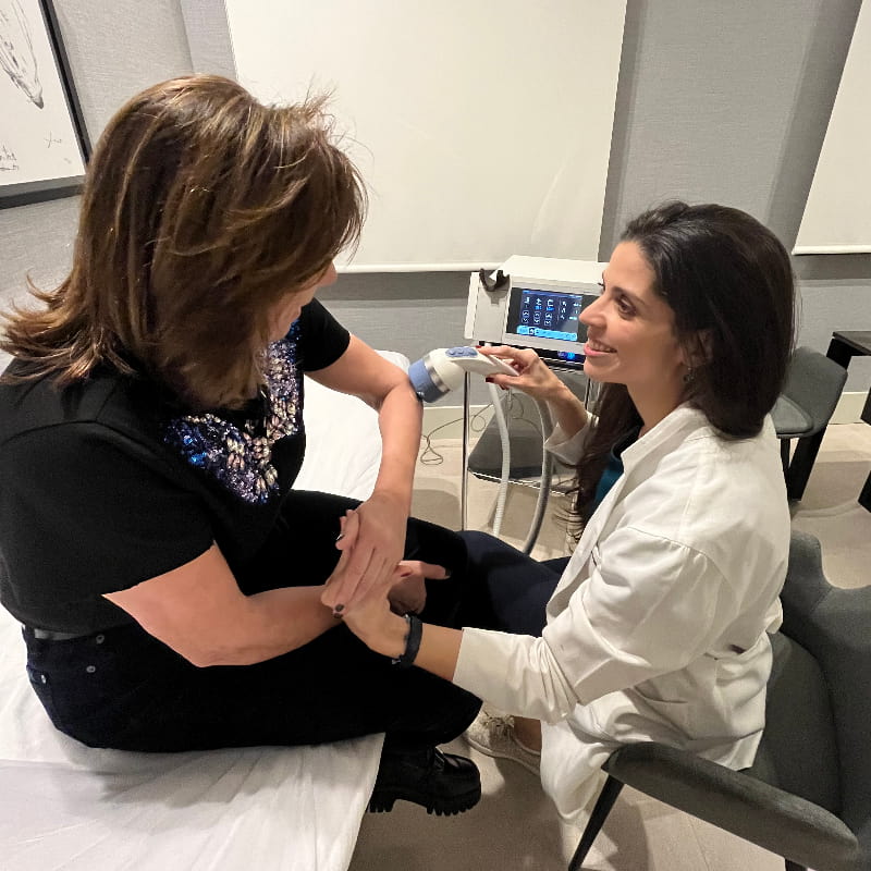 Trato a mis pacientes con la aplicación de Ondas de Choque Focales al ser estas más efectivas con patologías dolorosas del aparato locomotor, problemas de tejidos más profundos y heridas crónicas. Más información.